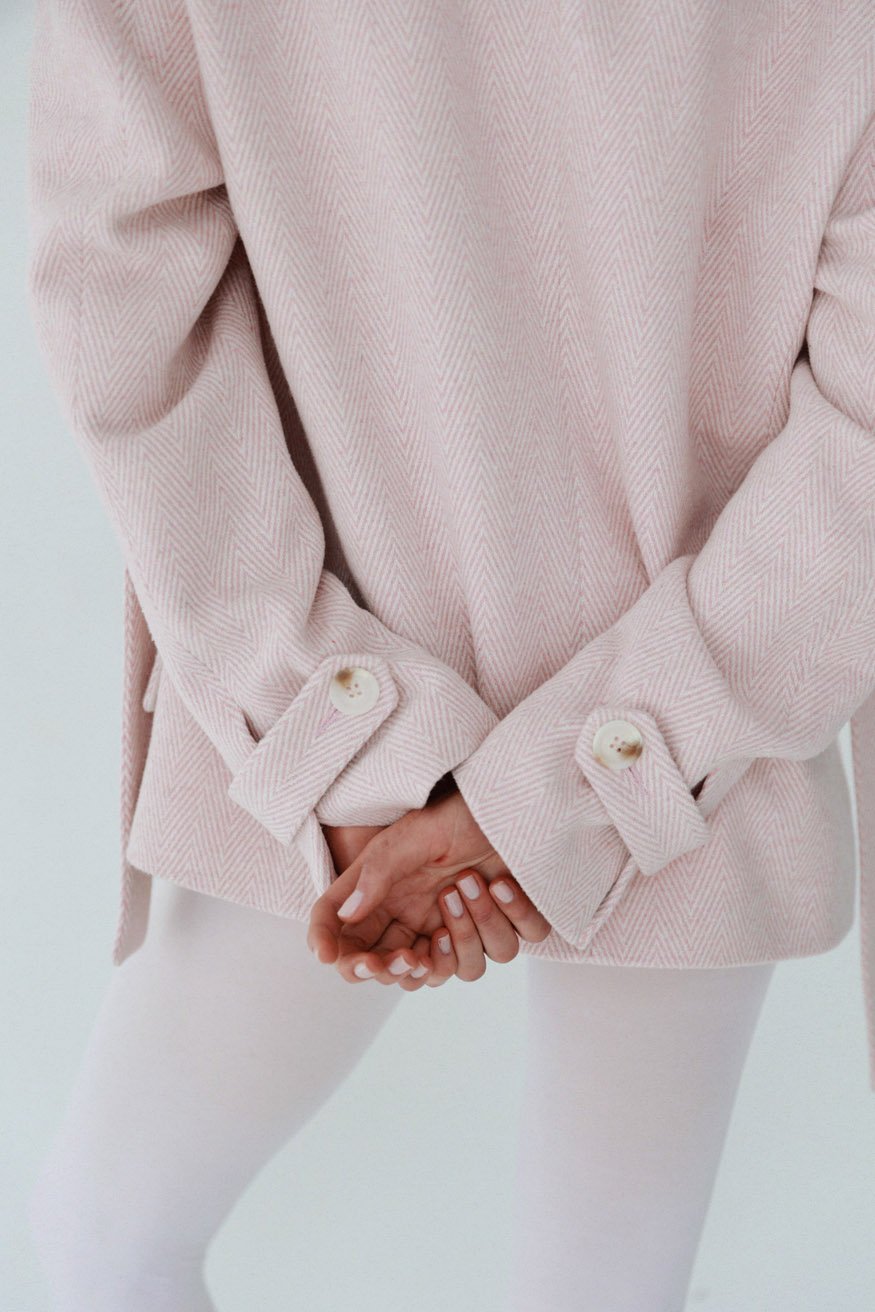 Aliénor jakna je upečatljiv komad koji spaja mekoću i strukturu, izrađen od 100% vune. Odlikuju je naglašena ramena, široki reveri i oversized kroj koji se prirodno i lepršavo spušta. Suptilni detalji poput produženih manžetni i dvorednog kopčanja daju joj profinjenu oštrinu, čineći Aliénor savremenim klasikom sa romantičnim prizvukom.