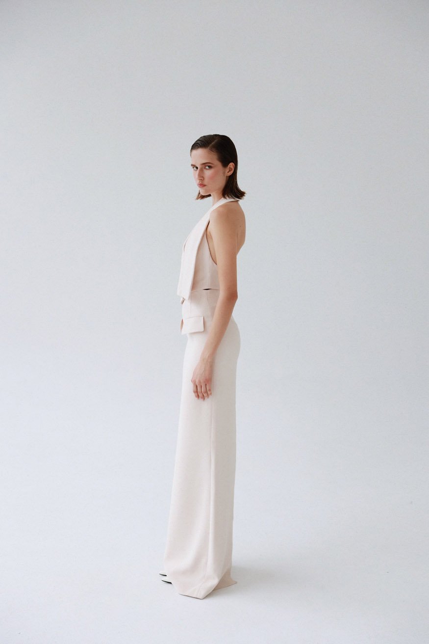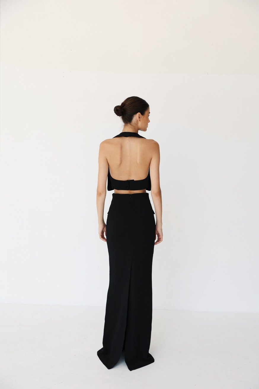 Amelia suknja je elegantan, dugi model izrađen od luksuzne mešavine viskoze, kašmira i poliamida. Sa glatkim padom materijala, izduženom siluetom i minimalističkim krojem, stvara savremenu, profinjenu liniju koja prati telo bez preopterećenja forme. Može se nositi u kompletu sa Amelia topom za skladan izgled ili samostalno kao osnovni komad uzdignute jednostavnosti. Dostupna je u bež, crnoj, kamel, bordo i beloj boji.